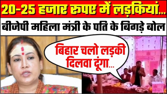 बता दें सोशल मीडिया पर वायरल हो रहे एक वीडियो में मंत्री के पति एक अविवाहित कार्यकर्ता को संबोधित करते हुए यह कहते नजर आ रहे हैं कि ‘लड़कियों की कोई कमी नहीं है’ और ‘बिहार में 20–25 हजार रुपये में शादी के लिए लड़कियां मिल जाती हैं’. इसी अभद्र टिप्पणी को लेकर जमकर बवाल हो रहा है.